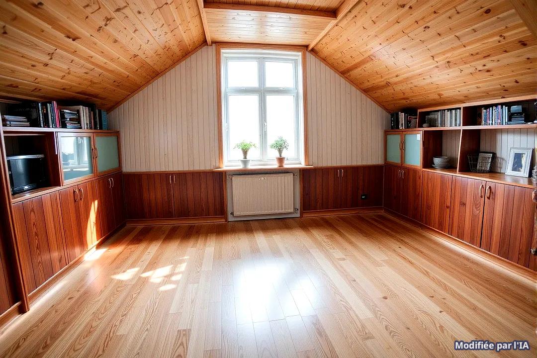 Étage : Palier desservant deux pièces mansardées et une salle d’eau.